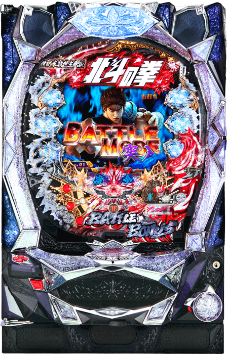 確変中はバトル演出で展開し、シリーズらしい勝敗の緊張感を軸にゲームが進行します。 さらに本機はRTC演出を搭載しており、全台一斉演出の「降臨タイム」中に図柄揃い大当たりを引くと ジャギ・アミバが選択可能になるなど、遊技中の“特別感”を強める仕掛けが用意されています。